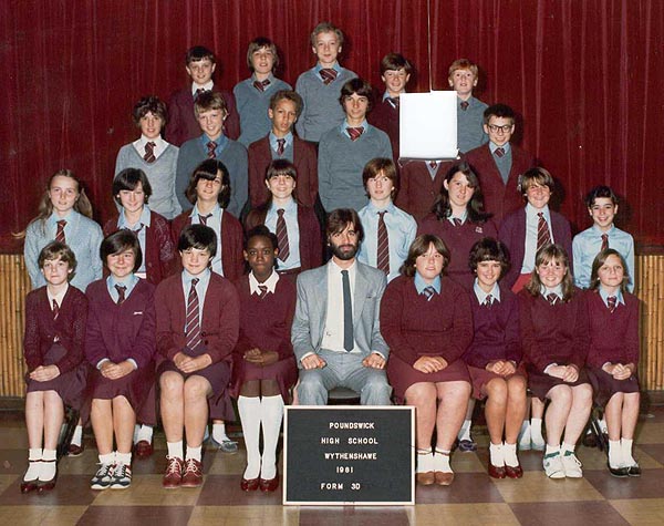You will have noticed that poor Phil Clark has been expunged from this photo. Tina Carter, who sent it in, tells us how this came about. Her friend, Stephanie Ramsey, fancied Phil but Stephanie left school shortly after the photo was taken and her mum didn't buy a copy of it. So Tina cut out Phil from her copy and gave it to Stephanie as a leaving present. Tina says "it seemed like a good idea at the time"; and why not! Sorry Phil, that's the price of being popular! |